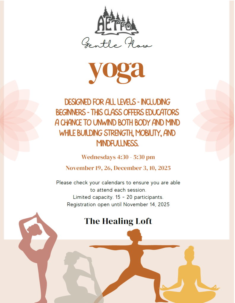Yoga designed for all levels - including beginners. This class offers educators a chance to unwind both body and mind, while building strength, mobility and mindfullness. CHECK YOUR CALENDAR TO ENSURE YOU ARE ABLE TO ATTEND EACH SESSION.